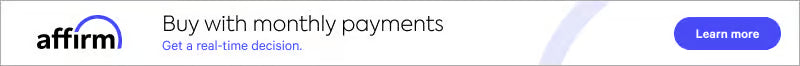 Rates from 0–36% APR. Payment options through Affirm are subject to an eligibility check, may not be available everywhere, and are provided by these lending partners: affirm.com/lenders. Options depend on your purchase amount, and a down payment may be required. CA residents: Loans by Affirm Loan Services, LLC are made or arranged pursuant to a California Financing Law license. For licenses and disclosures, see affirm.com/licenses.